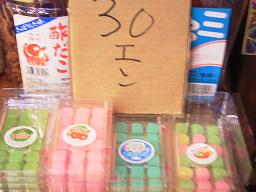 いまどき珍しい桜餅やその仲間のソーダ餅(?)と、チュッパチャプスやらラムネを買いました。しめて200円。安い!